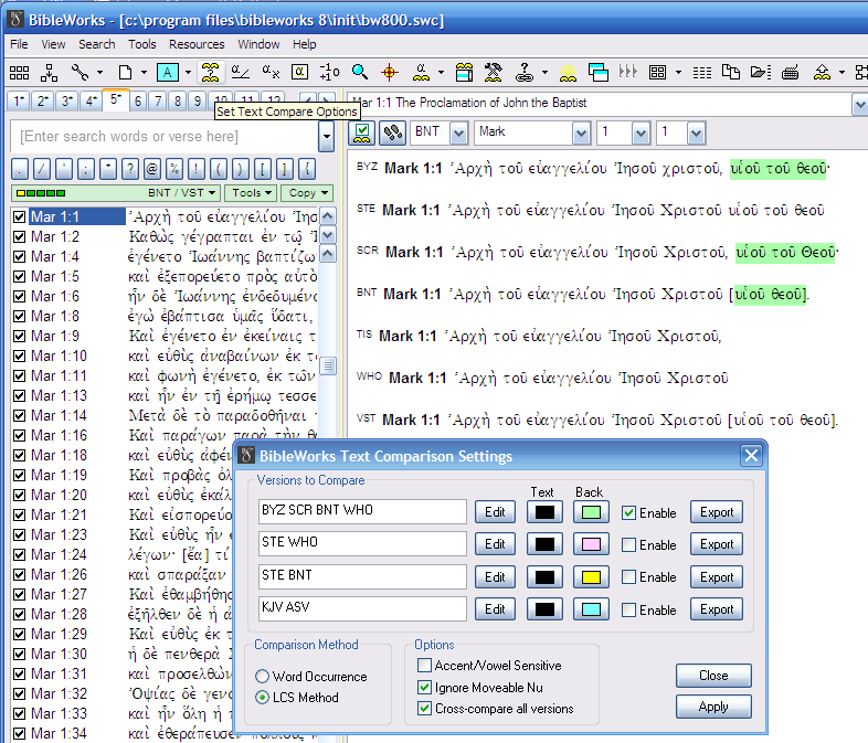 If you don't have any of the Bible software packages, Manuscript Comparator